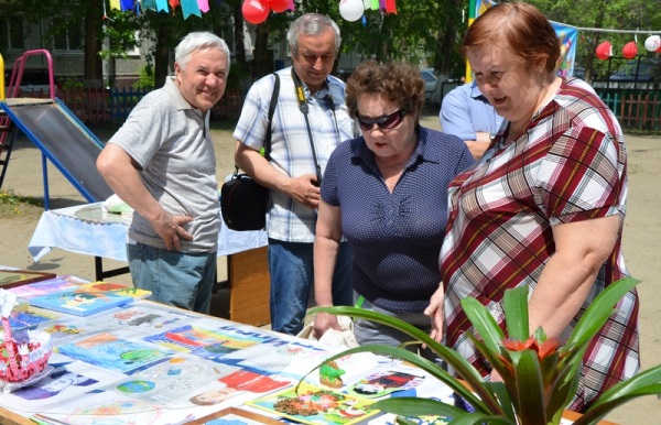 Соседи дружной компанией украсили детскую площадку яркими воздушными шарами, флажками и плакатами. В специальной зоне обустроили выставку фотографий, которые познакомили всех гостей с 45-летней историей дома и его самых активных жителей. Рядом расположили выставку декоративного творчества и предмета увлечений жильцов от самого юного до самого зрелого возраста.